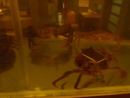 Kreveta, čeká na svého jedlíka. Pokud si dáte krevety, s naprostou samozřejmostí je vyloví čerstvé z akvária a připraví jen pro vás.