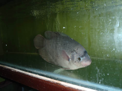 Ikan Gurami, čili ryba Gurami. Jednu nám vylovili a připravili. Byla moc dobrá.