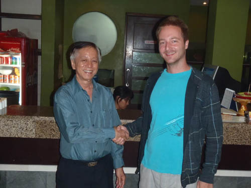 Majitel restaurace se se mnou s radostí vyfotil. Byl rád, že jsme právě z té jeho čínské restaurace „na větvi.“